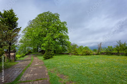 Beautiful courtyard of ancient Martvili monastery in Georgia