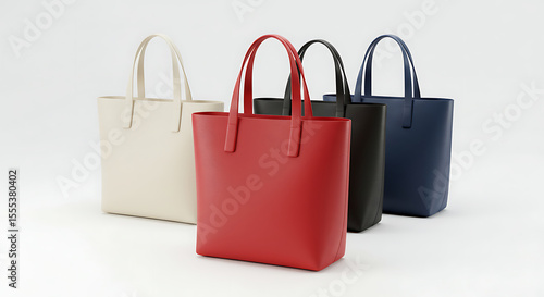 Beautiful cream, red, blue, black leather female fashion bag isolated on white background