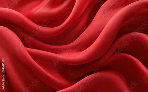 Beautiful crimson fabric gracefully draping in soft waves, creating an elegant and luxurious visual appeal for textiles or fashion themes.