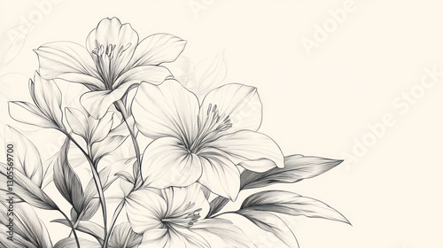 Beautiful Detailed Sketch of Lilies with Leaves on White Background