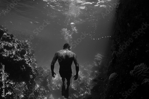 Beautiful diver goes on an underwater adventure in frighteningly deep sea