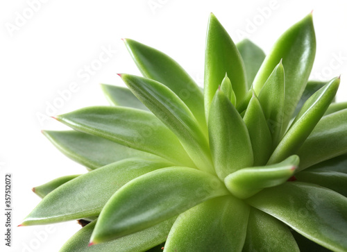 Beautiful echeveria on white background, closeup. Succulent plant