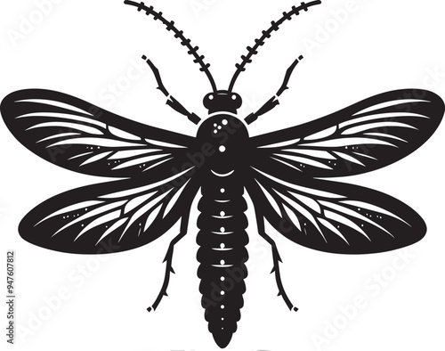 Beautiful firefly insect silhouette illustration isolated on a white background