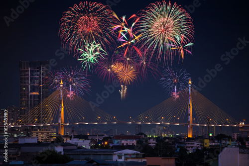Beautiful firework display on celebration night, showing on the river