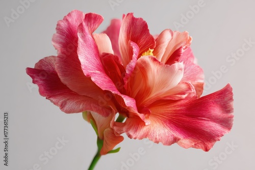 Beautiful floral arrangement with vibrant petals featuring a gradient from light pink to deep red, highlighted by yellow stamens against a soft background for captivating nature photography