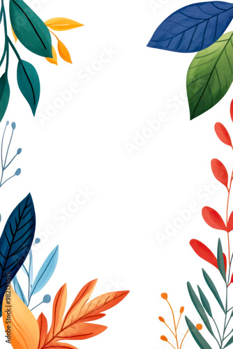 Beautiful floral border featuring vibrant leaves and petals. Perfect for invitations, cards, and creative projects.