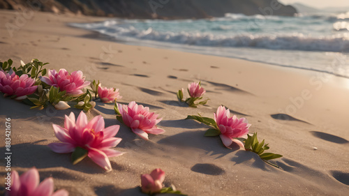 Beautiful flowers on the beach of sea