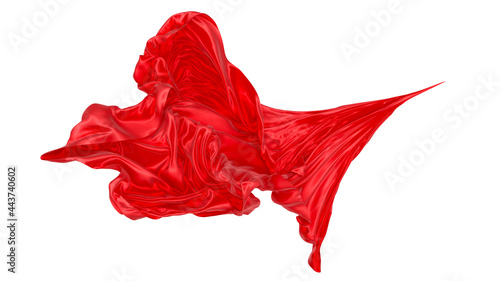 Beautiful flowing fabric of red wavy silk or satin. 3d rendering image.