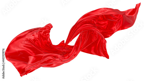 Beautiful flowing fabric of red wavy silk or satin. 3d rendering image.