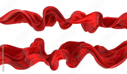 Beautiful flowing fabric of red wavy silk or satin. 3d rendering image.