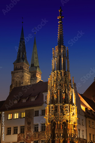 Beautiful Fountain at night. Nuremberg, Germany