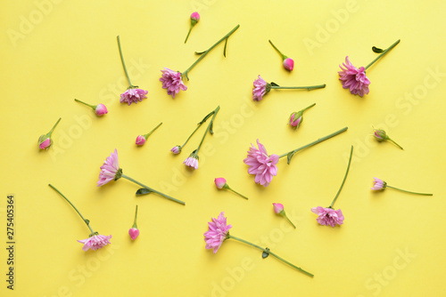 Beautiful fresh flowers on color background