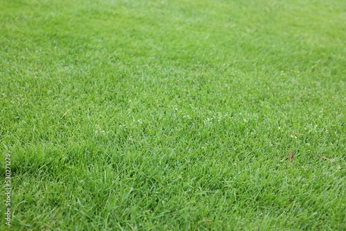 Beautiful freshly cut green lawn as background