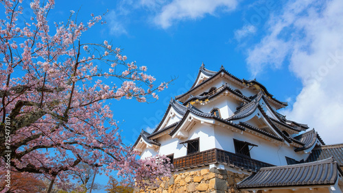 Beautiful full bloom cherry blossom at Hikone Castle in Shiga, Japan