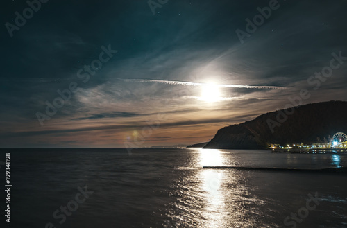 beautiful full moon over the mountain and the sea