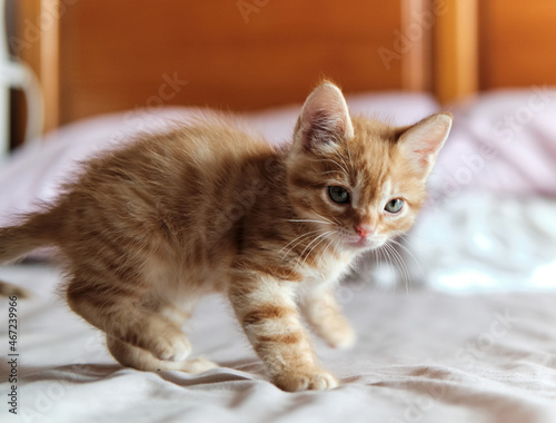 Beautiful ginger kitten indoor, close up image