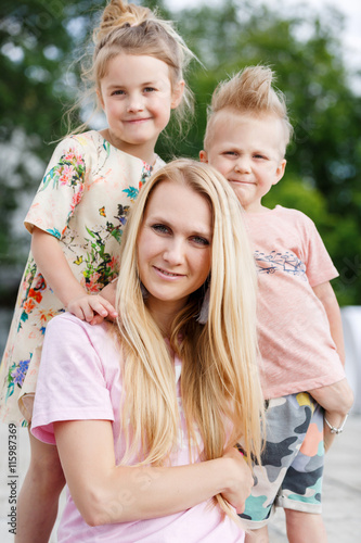 beautiful girl playing with her children