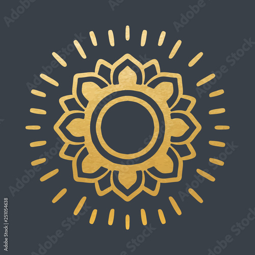 Beautiful Golden Sun. Hand Drawn. Ornamental Mandala.