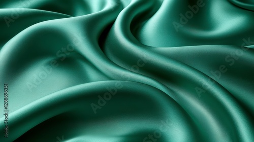 Beautiful green silk fabric draped in soft elegant flowing waves