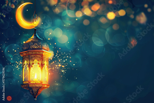 Beautiful greeting card with holiday composition for happy celebrate Ramadan, abstract vivid composition consists of fictional unreal fantastic vision on background