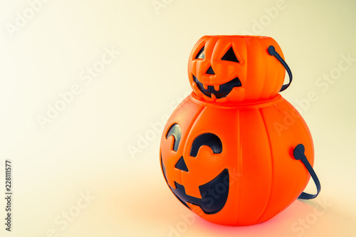Beautiful halloween decoration trick or treat on white background with filter, concept of halloween party, copy space(text space), close-up, blank for text