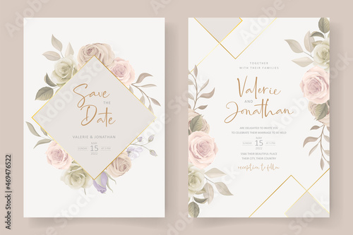 Beautiful hand drawn roses wedding invitation card set