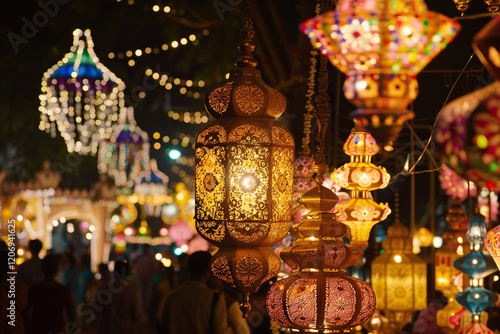Beautiful holiday composition for happy celebrate chinese festival of lanterns, abstract vivid composition consists of fictional unreal fantastic vision on background