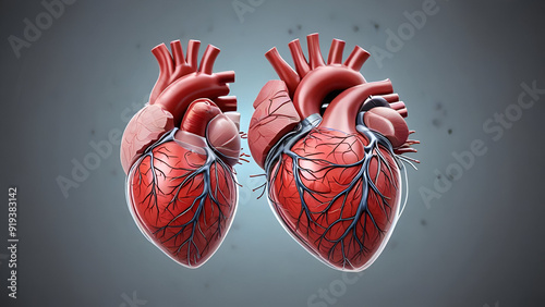 Beautiful human heart graphic, original Valentine's day concept. Red anatomical heart on a dark blue and gray background.