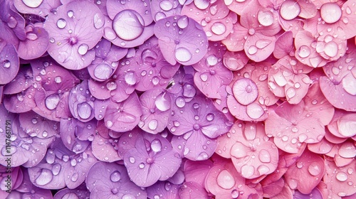 Beautiful Hydrangea Petals with Raindrops in Soft Purple and Pink Shades