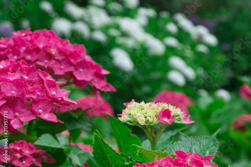 Beautiful hydrangeas in a Japanese garden in Kyoto.