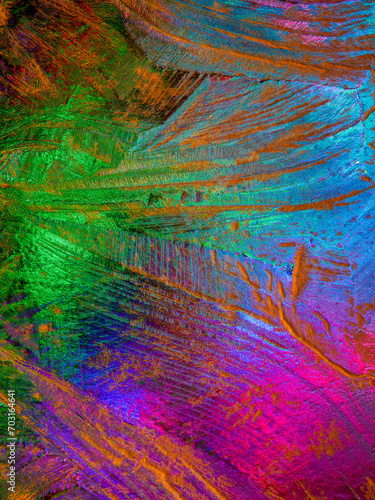 Beautiful ice pattern and sunlight close up on window glass early in the morning, natural winter background