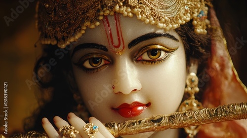 Beautiful Krishna with Flute: A Digital Painting for Worship