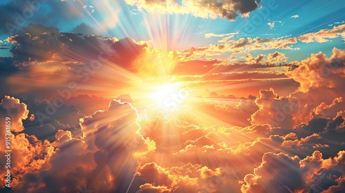 Beautiful landscape of sunset sky with sun rays and clouds