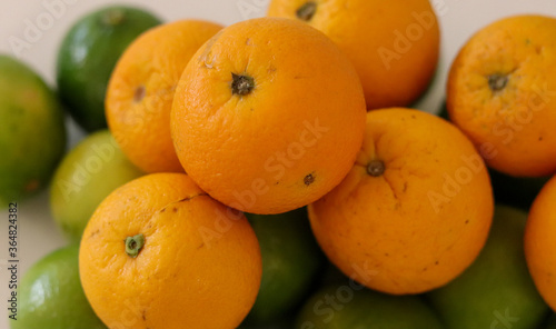 Beautiful lemons and oranges arranged on a table. A fruit rich in vitamin c.