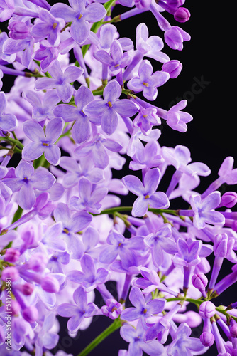 Beautiful lilac flowers. Blooming lilac bush with tender tiny flower. Purple lilac flower on the bush. Branch with lilac spring flowers. There are large lilac flowers on a branch of a lilac tree.