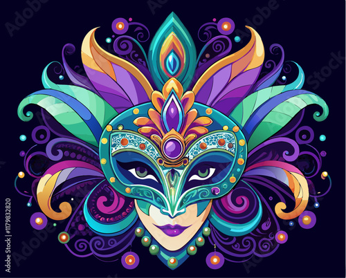 Beautiful Mardi Gras mask illustration generative ai