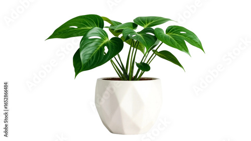 Beautiful monstera plant in a glossy white ceramic pot, isolated on transparent background. Perfect for interior design, decoration, and botanical artwork.