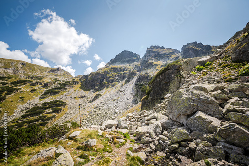 Beautiful mountain scenery in a sunny summer day. Rila mountain, Bulgaria. Hiking/ trekking concept.