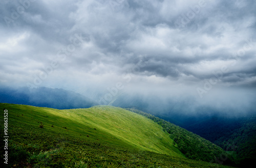 Beautiful mountains landscape with green hills. Carpathians, Ukraine.