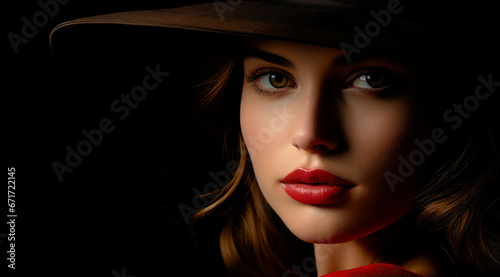 Beautiful Mysterious Woman with a Hat Wallpaper Cover Background Digital Art Card Magazine