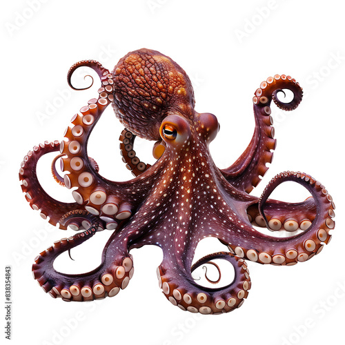 Beautiful Octopus Realistic Photo Isolated on Transparent Background