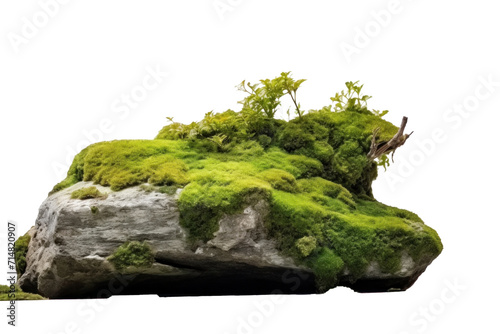 Beautiful of Large rocks with overgrown foliage and moss, plants and foliage around isolated on a transparent background.