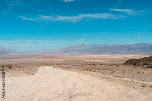 Beautiful panoramic landscape with mountains and desert in Death Valley, USA.
