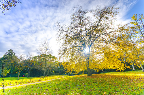 Beautiful park with sunrays through the tree in London, UK