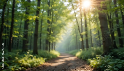 Beautiful Path Through a Sunlit Forest in a Natural Setting. generatiive AI