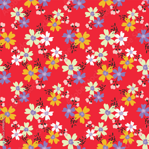 Beautiful pattern with flowers and leaf. Floral vector illustration.