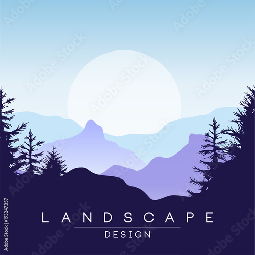 Beautiful peaceful mountains landscape at sunset, nature background for banner, flyer, poster and cover, vector ilustration