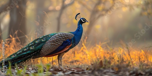 Beautiful peacock in the nature habitat. Wildlife scene from nature.