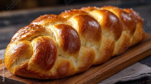 Beautiful photo of golden braided bread, freshly baked.