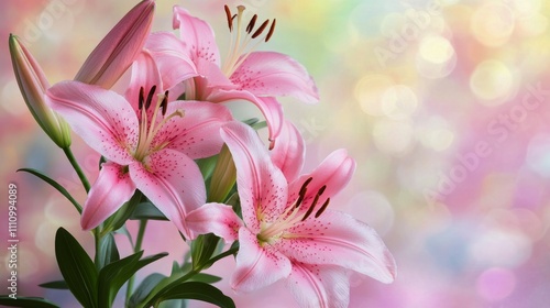Beautiful pink lilies thriving in a serene garden setting with a soft bokeh background